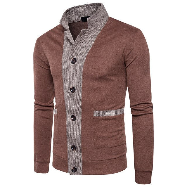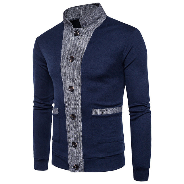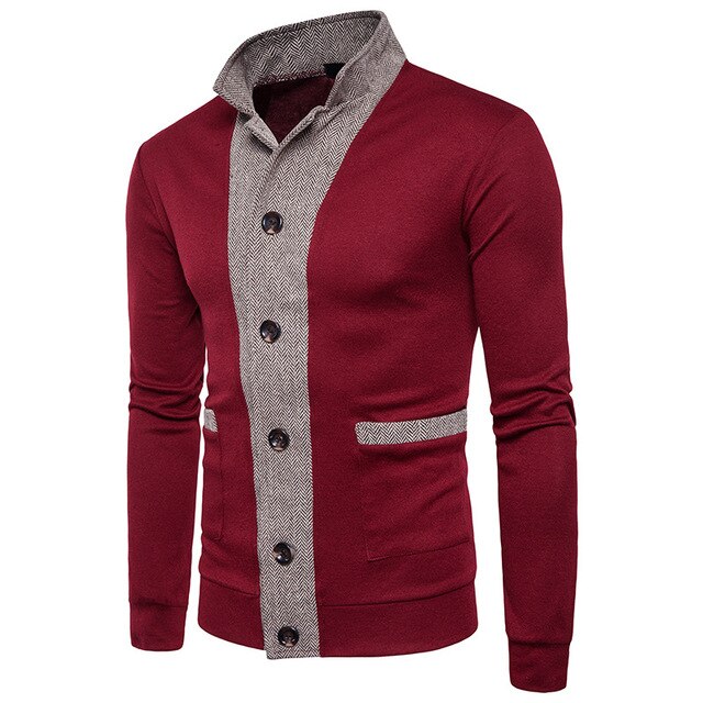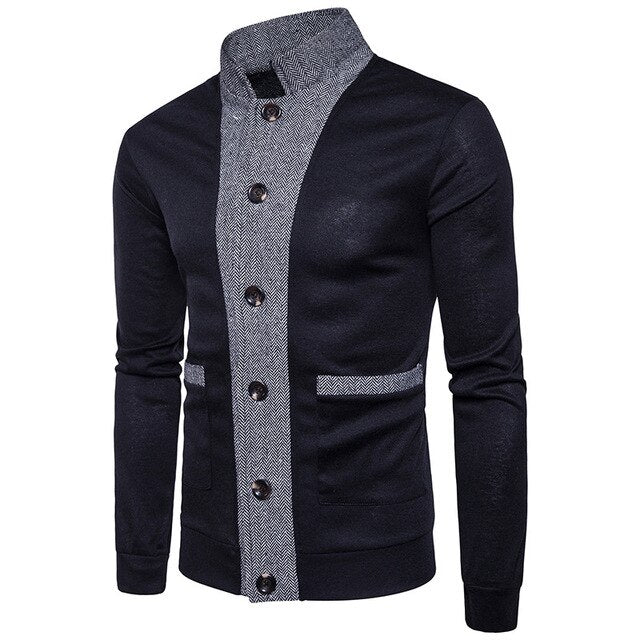 2019 Autumn Popular Men Casual Sweater Computer Knitted Single Breasted Men Fashion 2 Color Striped Patchwork Clothes S-XXL 318